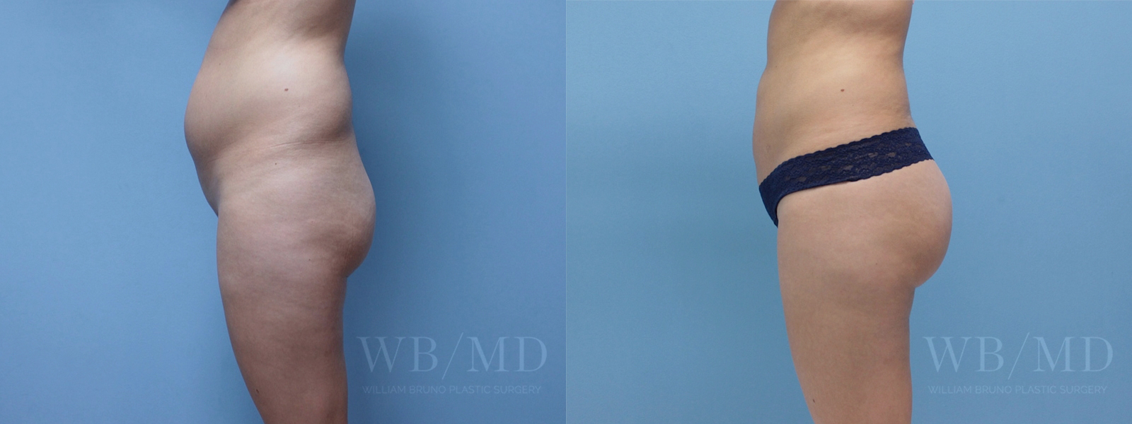34 year old woman before and after fat transfer to the buttock (Brazilian buttock lift). 450cc injected per side. Patient is 5 ft 3 inches and weighs 135 lbs. Photo is taken three months after surgery.