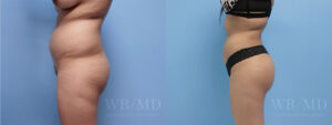 35 year old woman before and after liposuction with fat transfer to the buttock (Brazilian buttock lift). 500cc injected per side. She is 5’5” and weighs 130 lbs. Photo is taken four months after surgery.
