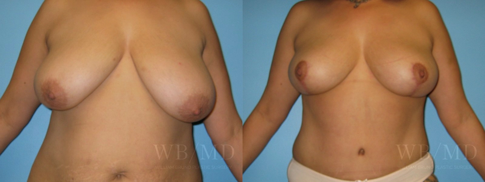 58 year old woman before and after a wise pattern mastopexy, no breast implants. Photo is taken 14 months after surgery.